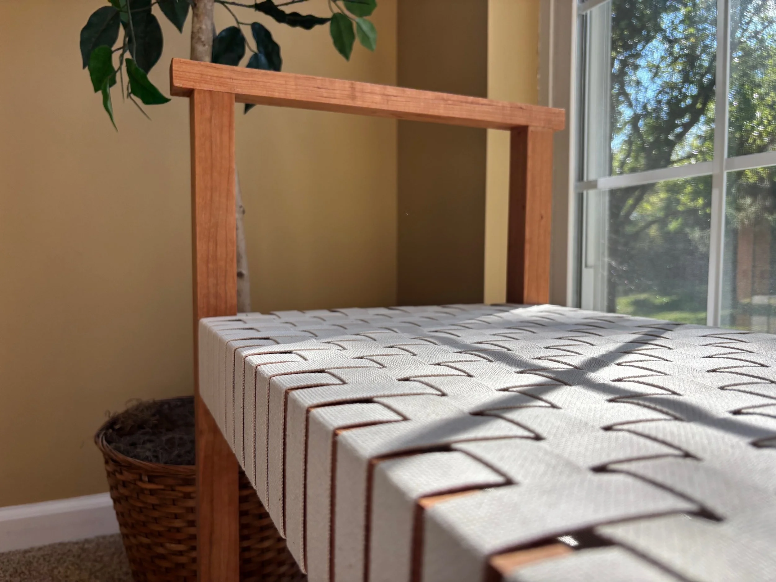 Explored colors and shaker tape woven patterns that harmonized with cherry wood but was also playful and fun.