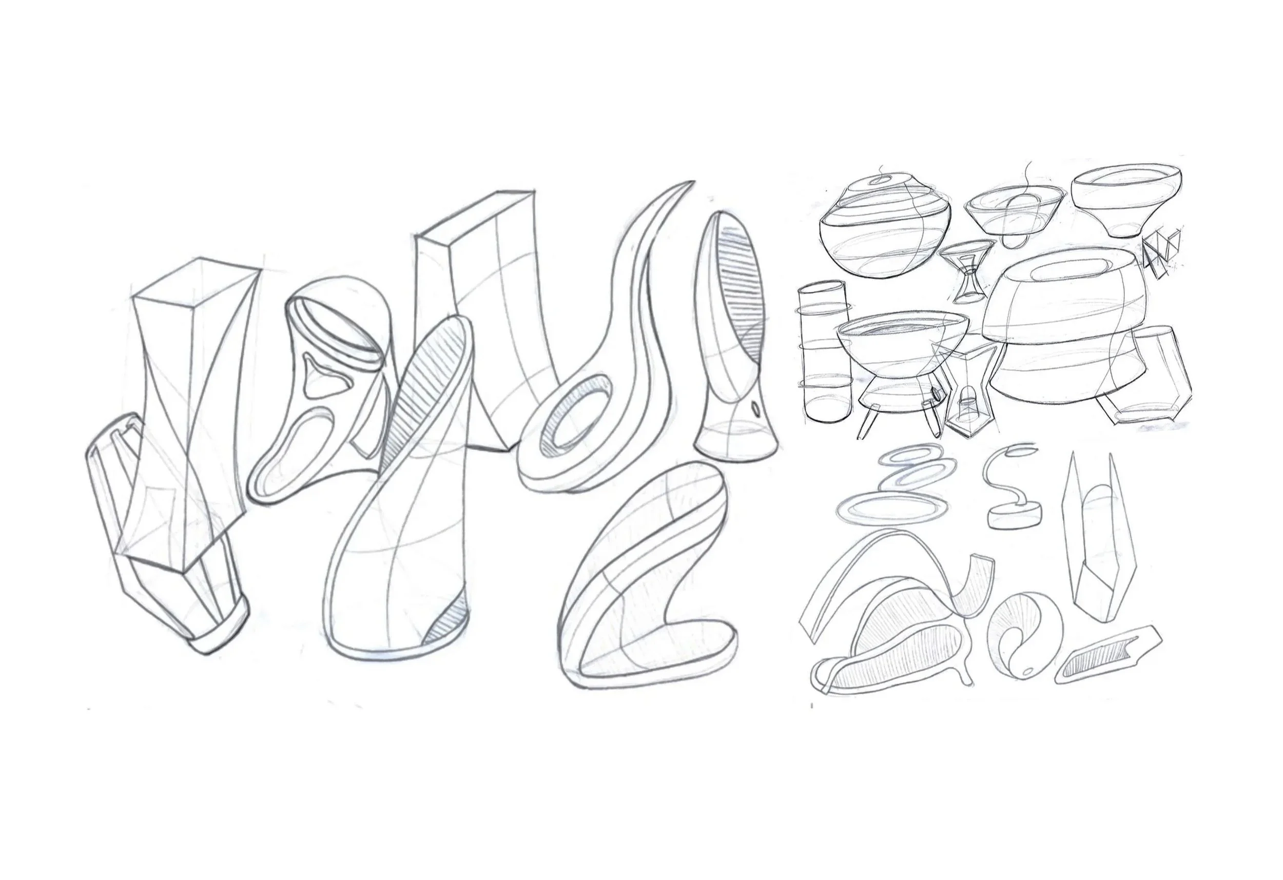 On the first set of major ideation, I focused on grasping a form that I resonated with and felt like demonstrated the flow and uniqueness I was driving for. playing with many organic and static forms encouraged a wide range of ideation. However, at this stage, button placement or internals were not recognized.