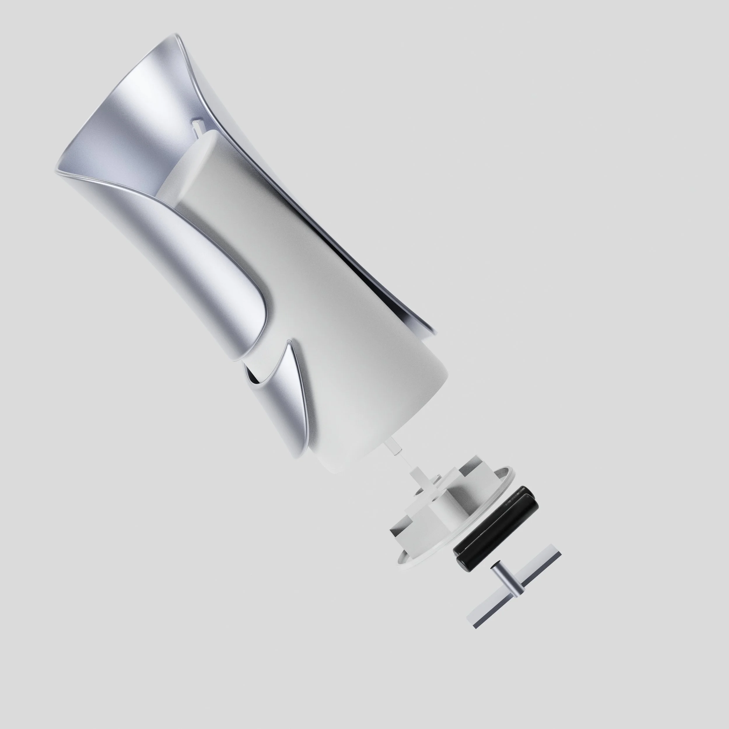 At this stage, button placement and Internals began to take shape as I began to think about what would best be held and accessible. Beginning to play with the idea of an organic shape wrapping around the light influenced the design aesthetic of futurism.