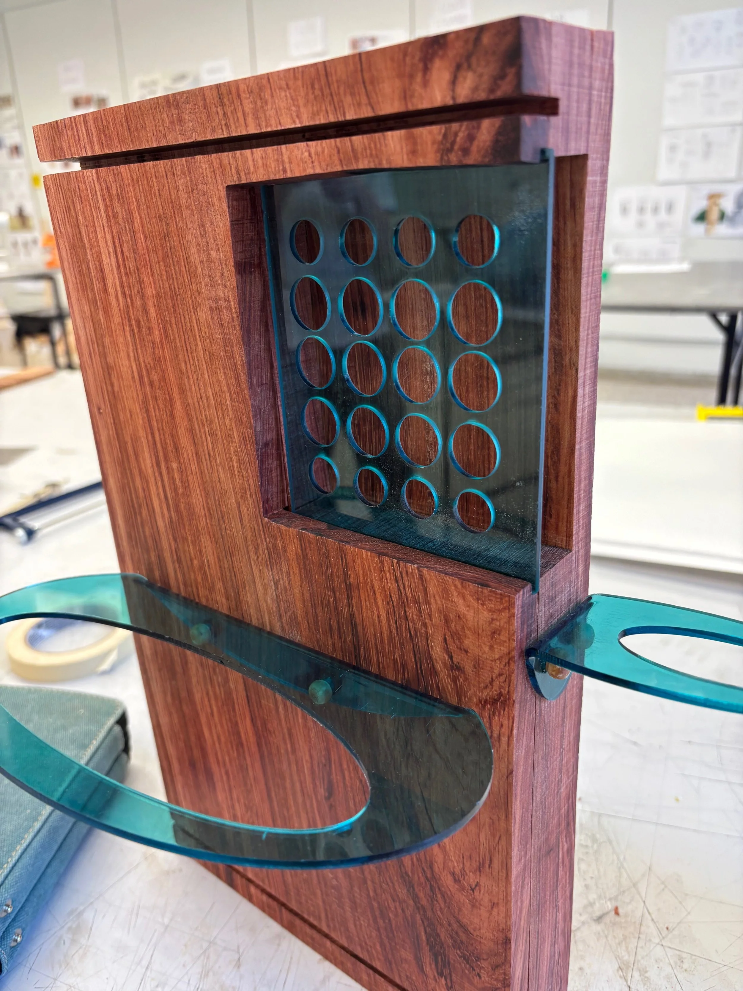 During this aspect I was really focused on what kind of wood I was going with or if I wanted to stain my wood. Each type of woods durability was heavily considered as some woods uphold much better than others, I ended up choosing a wood called bubinga which had African origins. I also had to really take into consideration how the bird would react to the different pieces of color plastic, The selection of plastic was evaluated, focusing on aesthetic integration.
